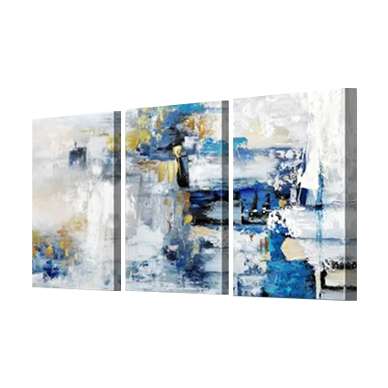 Bring elegance and depth to your space with this Blue and Gold abstract canvas set. Each panel is 100% handmade, featuring rich textures, layered techniques, and metallic gold leaf accents that create a striking visual effect. Designed to stand out, this artwork adds luxury and warmth to any room.